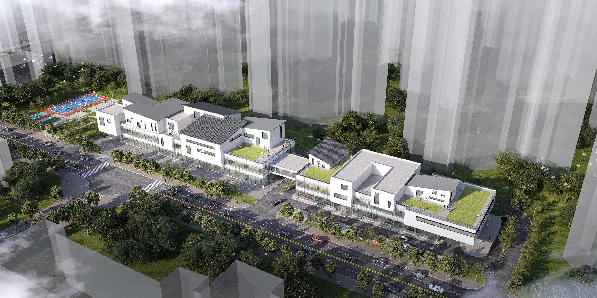 Centered on the concept of “Urban Vitality · Symbiosis with Nature”, this next-generation eco-friendly farmers’ market integrates fresh produce retail, community services, and leisure-social spaces. The design employs modular volumetric compositions and intersecting blocks to create a dynamic interplay of light and shadow within three-dimensional alleyways. Maximized natural daylighting and ventilation are achieved through transparent glass curtain walls and a north-south permeability strategy.